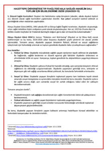 Hacettepe University Faculty of Medicine, Department of Public Health regularly and systematically produces and shares training and awareness materials throughout the year under the title of “Information Series for the Society” in order to increase social health literacy . In the 2023-2024 period, it prepared and made available information documents for the society on topics such as combating addiction, protection from infectious diseases, antibiotic resistance, healthy nutrition, chronic disease management and environmental health in order to increase the health literacy of the society. All documents are published on the website of the Department of Public Health.