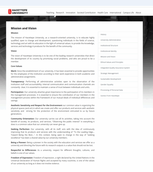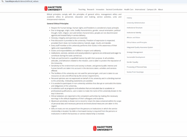 When considered together with the University’s General Ethical Principles and its Mission–Vision declarations, these publicly posted documents demonstrate that Hacettepe University’s admissions processes operate within a transparent framework grounded in non-discrimination, equal opportunity, and clearly defined positive discrimination mechanisms.