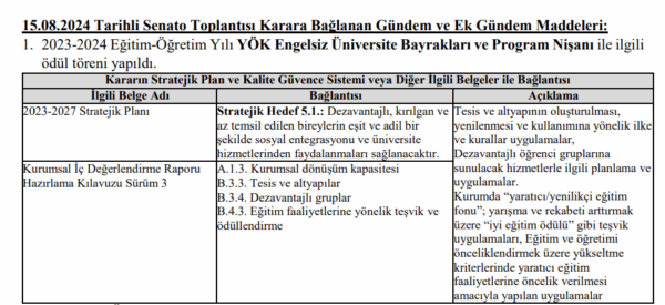 For these efforts, the university received the 2024 Council of Higher Education (YÖK) Barrier-Free University Award.
