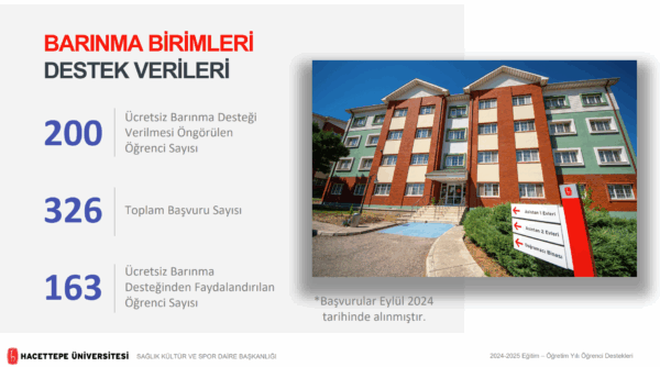 Hacettepe also supports socio-economically disadvantaged students through structured financial assistance programmes. As of September 2024, the university provides: