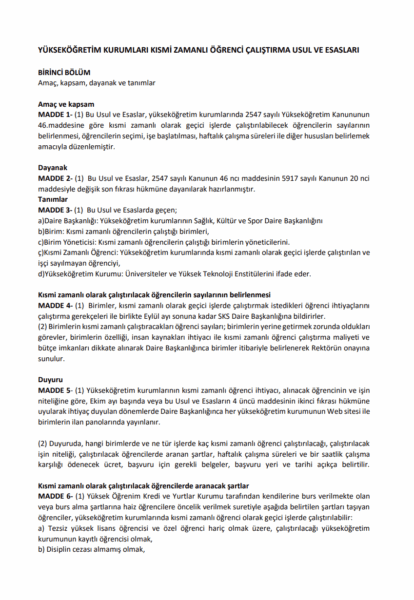 Part-Time Student Employment Regulations for Higher Education Institutions