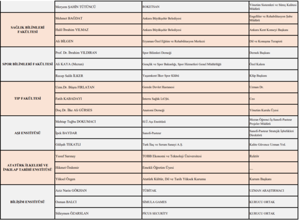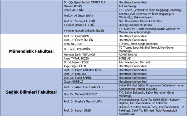 Hacettepe University establishes academic unit advisory boards at the faculty level. University; It makes improvements in this direction by making use of the experiences, opinions and suggestions of the members of these boards, which consist of representatives of the public, private sector and non-governmental organizations. The membership structure and activities of these boards are regularly reviewed and updated by the University’s Quality Management Office.