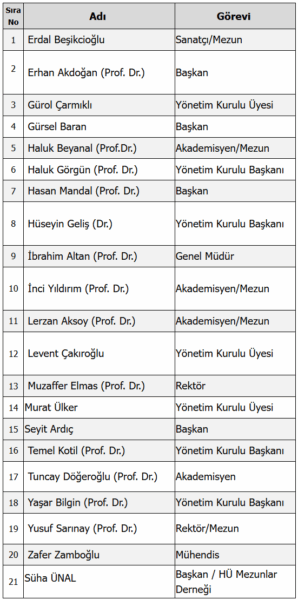 Hacettepe University Advisory Board; It was created to receive opinions and suggestions in order to contribute to the strategic plans of the university, to increase its social impact, to provide institutional development, and to improve education and research processes.