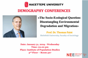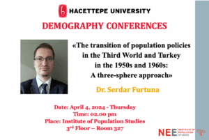 Hacettepe University Institute of Population Studies organizes regular monthly conferences and training sessions open to the public. The Demography Conferences series continued throughout 2024. The first conference of 2024 was held on January 31, 2024, on environmental degradation and migration. Another conference organized by the Institute was held on April 4, 2024. The topic of the conference was population policies in Third World Countries and Turkey in the 1950s and 1960s.