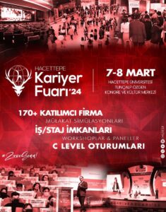 Hacettepe University Career Center, in collaboration with seven student groups from our university, organized a career fair on campus on March 7–8, 2024. The fairs are held regularly every year. They are open to students from outside Hacettepe and are free of charge. The purpose of the fairs is to bring together employers from different sectors and university students to provide informative sessions on career development and create job opportunities.